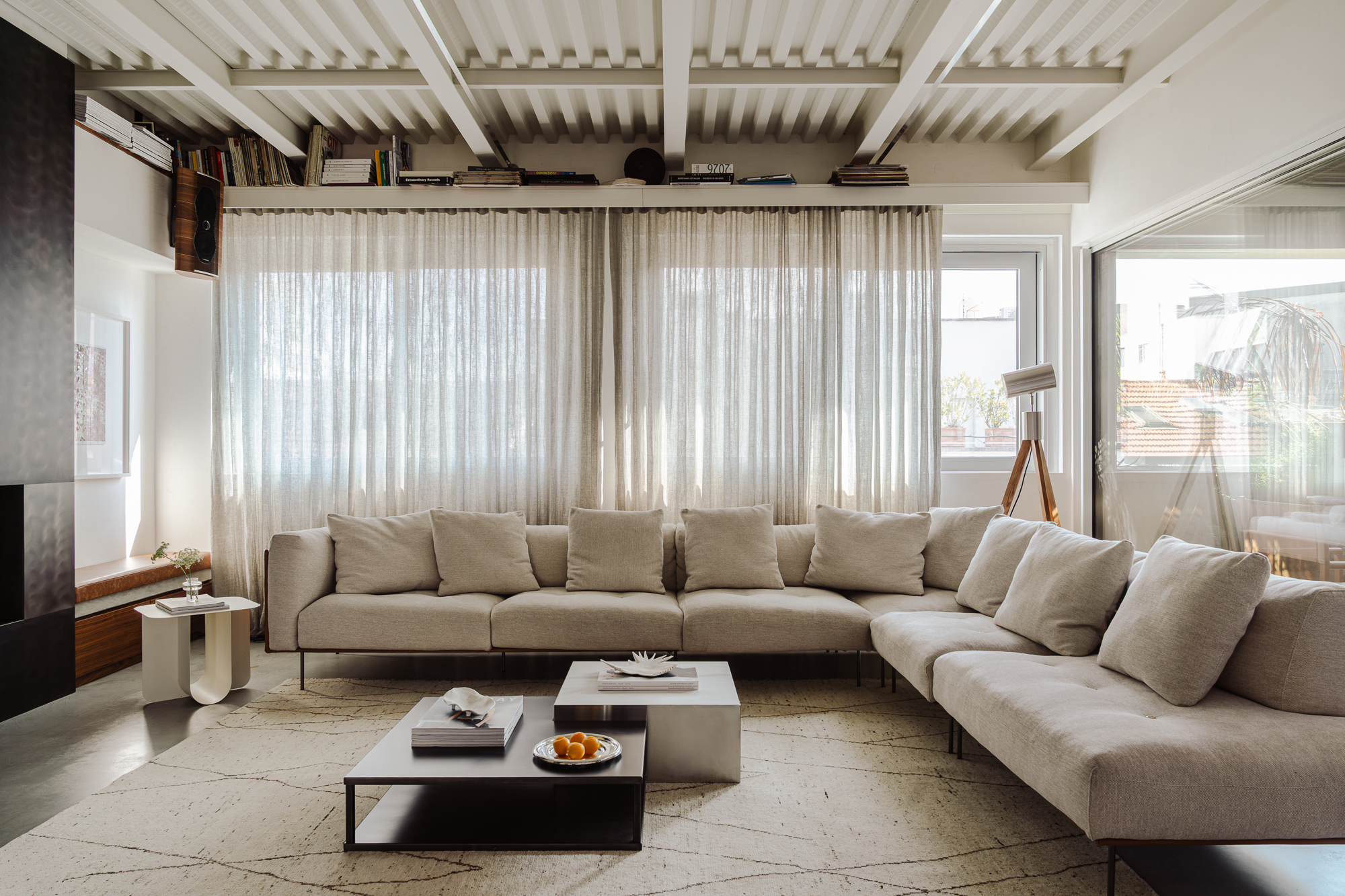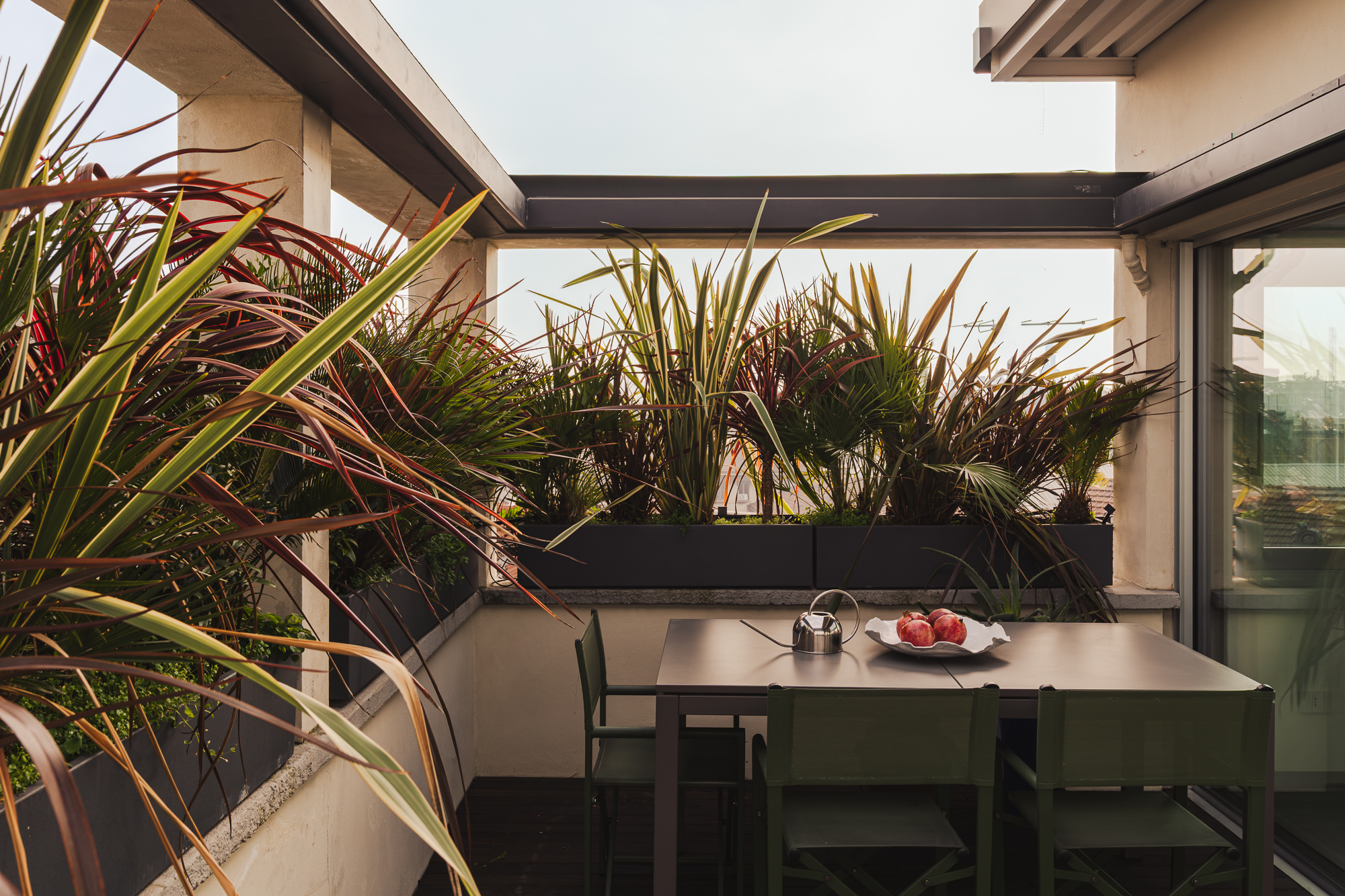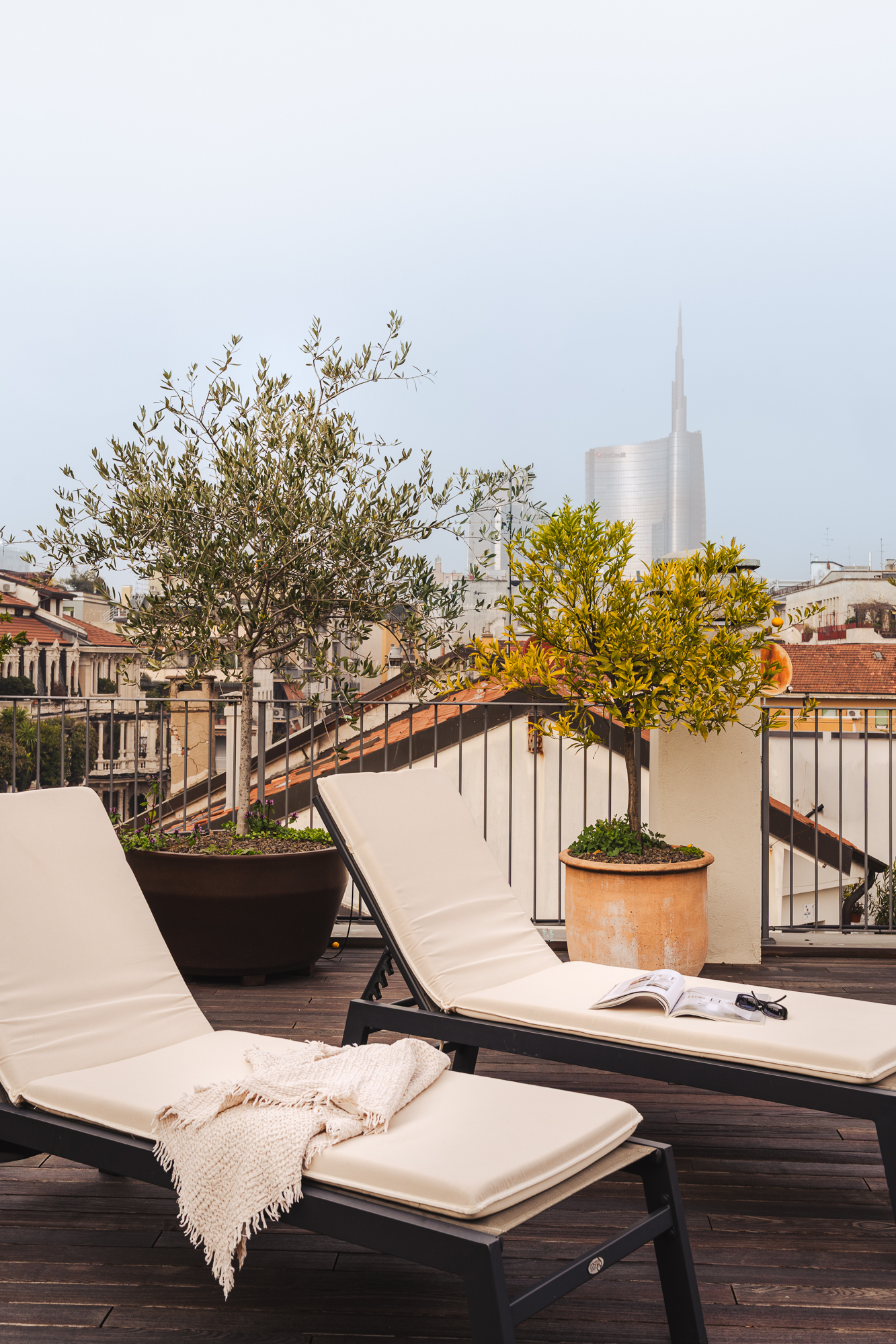 - Sopra i tetti di Brera, una grande terrazza privata completa la scena — uno spazio raro, dove la città si apre e la luce diventa parte dell’abitare.