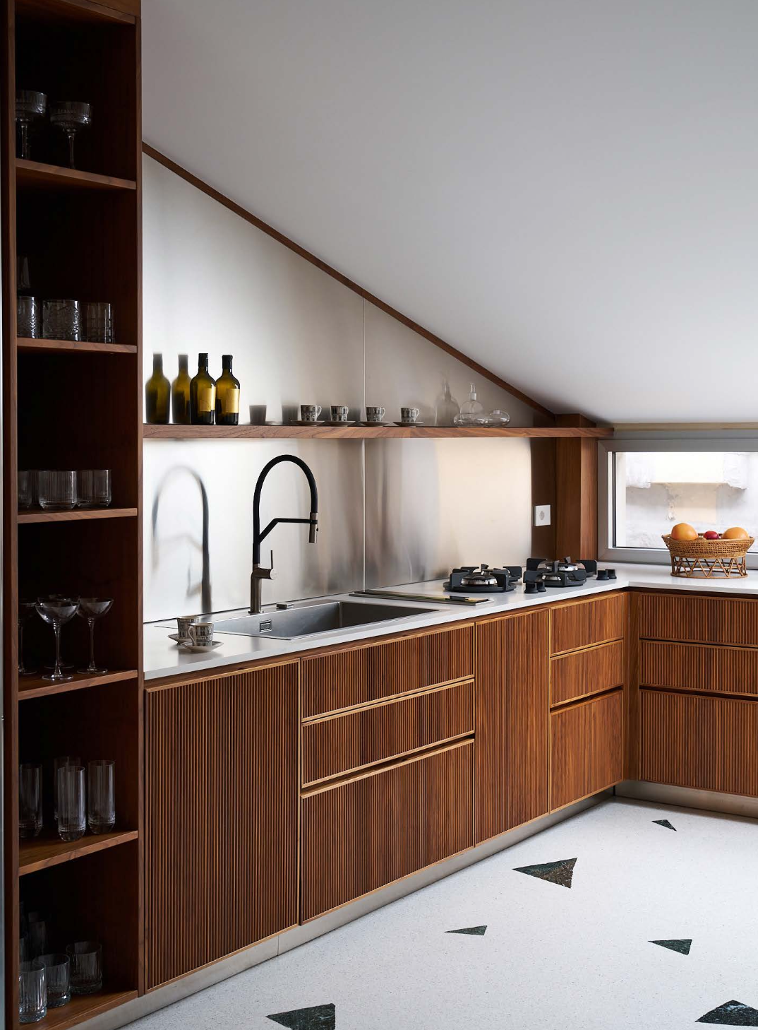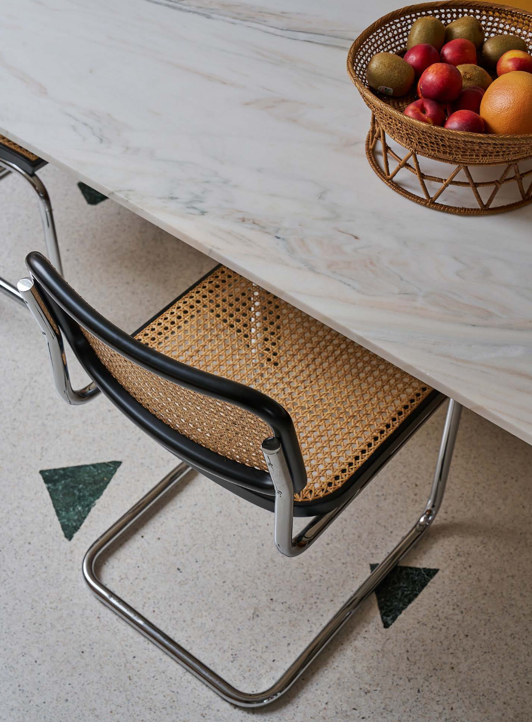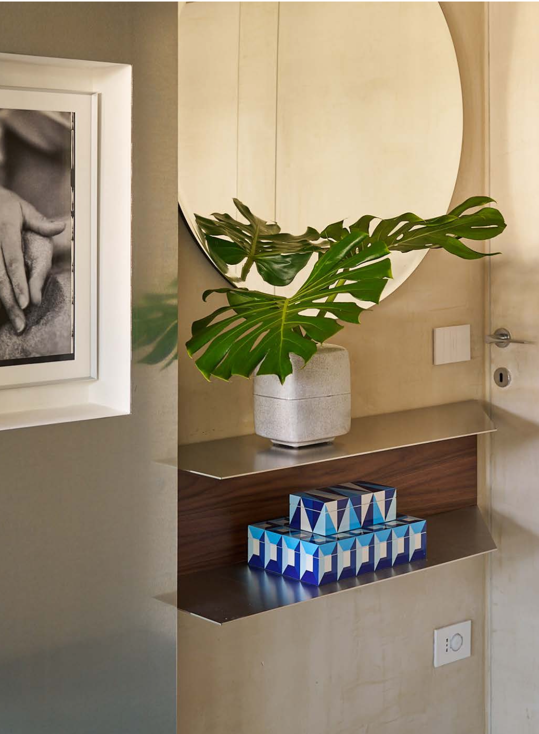 - Bathed in light and framed by a private terrace, the property combines the polish of a bourgeois address with the raw pulse of contemporary design. Concrete floors set a quiet rhythm underfoot, while bespoke carpentry and sculptural furniture define the space with precision and intent. Each line feels considered, each texture deliberate — from the custom kitchen’s sleek geometry to the curated mix of art and design pieces.