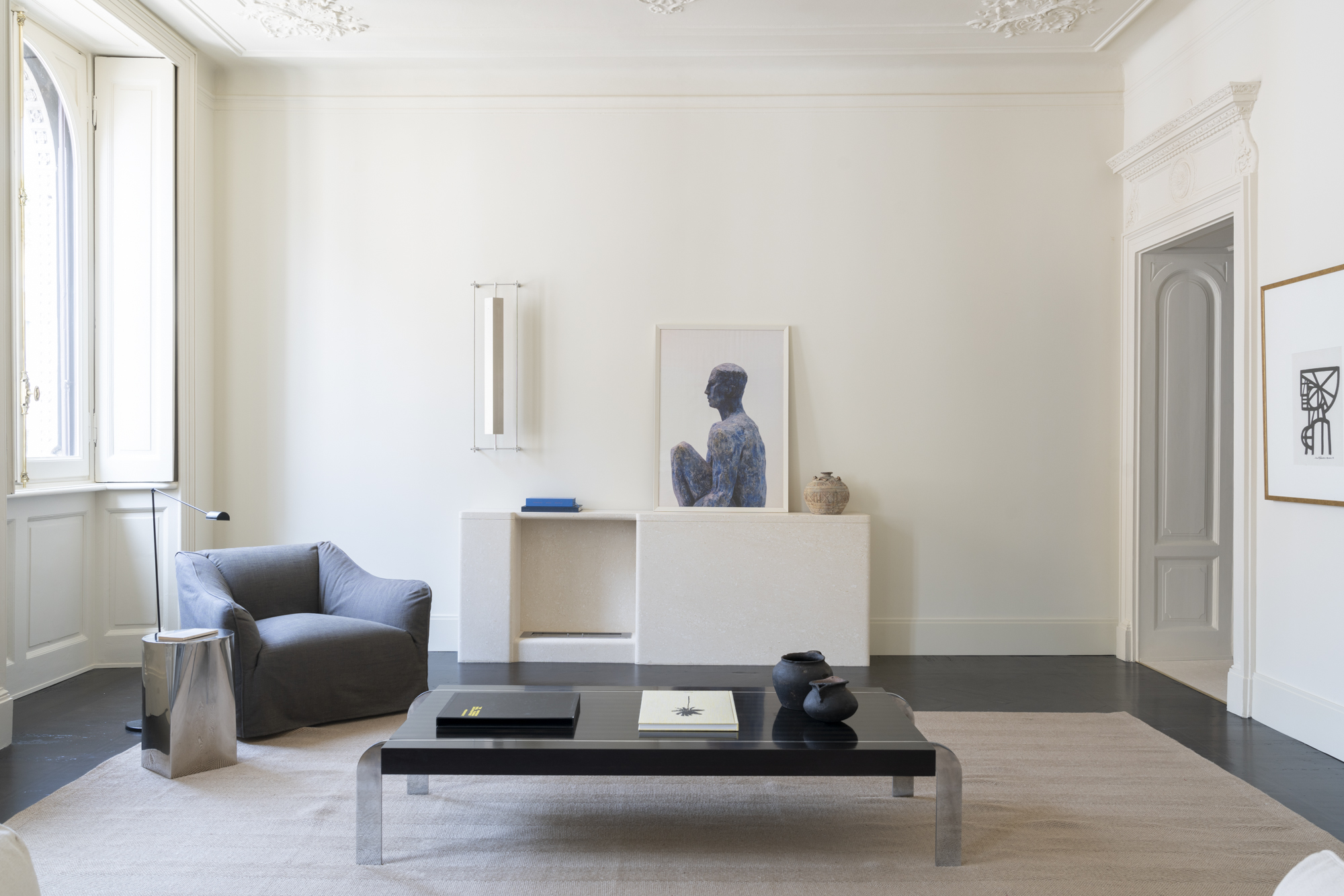 - Nestled within the graceful walls of an elegant palazzo, this apartment is a masterful dialogue between heritage and modernity. Soft, tonal hues wash over the interiors, catching the light and lending an air of quiet luxury. Every detail—thoughtfully chosen and elegantly restrained—contributes to a composition where timeless architecture meets modern sensibility, and where beauty resides not in excess, but in balance.